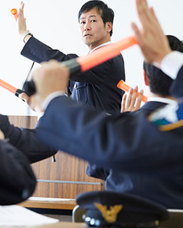 入社後、まずは法定研修(20時間以上)を行い、警備業の法律に関すること、基本動作、装備品の使い方などの基本を研修します。法定研修終了後は、国家資格を持つ教育スタッフがしっかりサポートに入るので、未経験でも安心して働けます!